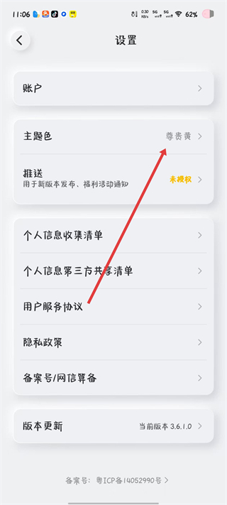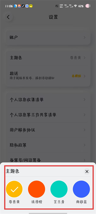 3、進入設(shè)置界面之后,點擊主題色選項。