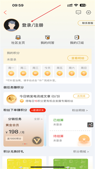 2、進(jìn)入個(gè)人中心的頁面內(nèi),點(diǎn)擊登錄/注冊(cè)的按鈕。