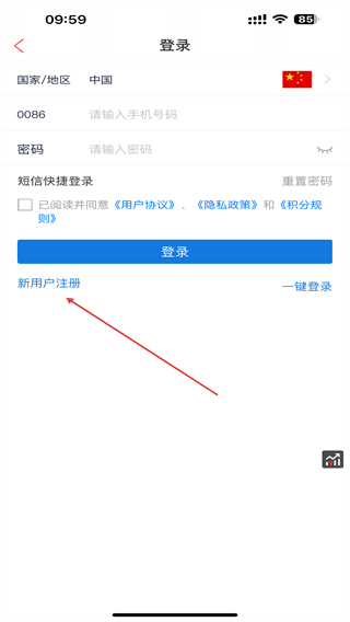 3、進(jìn)入登錄的界面內(nèi),點(diǎn)擊左測(cè)新用戶注冊(cè)的按鈕。