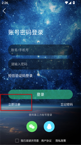 3、在登錄頁面點(diǎn)擊立即注冊(cè),進(jìn)入注冊(cè)頁面。