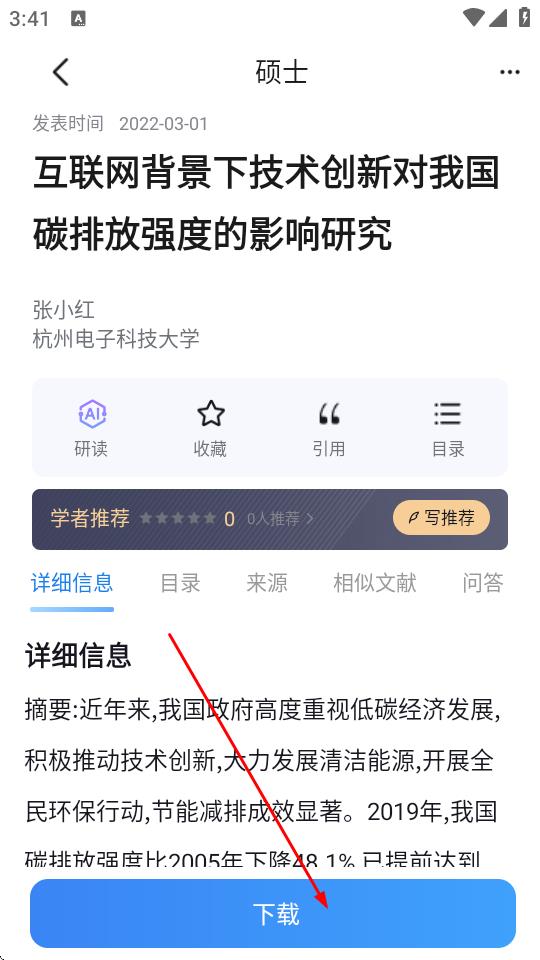 3、在論文詳情頁面,點擊下方的下載按鈕。