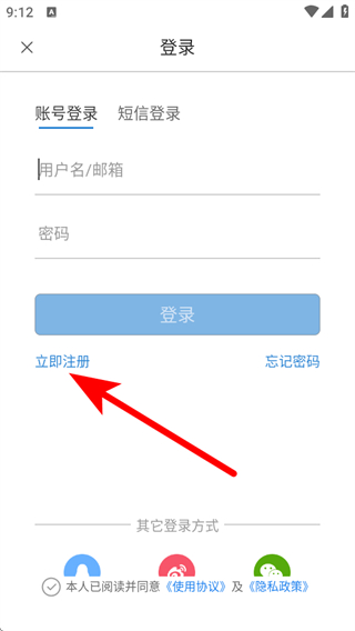 3、在登錄界面,點擊立即注冊選項,進入注冊頁面。