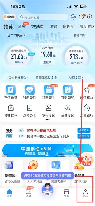 1、打開中國移動北京APP,點擊右下角我的,進入個人頁面。