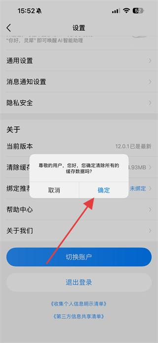 4、在確認框中點擊確定,完成緩存數(shù)據(jù)清除。