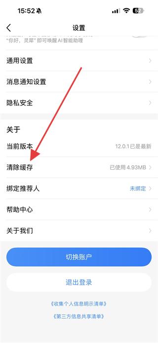 3、在設(shè)置界面中,點擊清除緩存選項,彈出確認框。