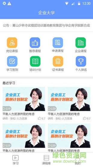 “學(xué)院”--全員學(xué)習(xí)APP中的課程庫,“全員學(xué)習(xí)”所有課程在這里都可以查看、搜索、并申請學(xué)習(xí)。