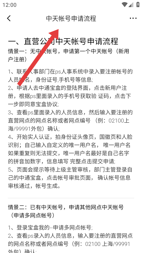 1、查看中天帳號申請流程,了解新用戶注冊、多網(wǎng)點帳號申請的步驟如人事系統(tǒng)錄入、寶盒注冊、實名認證等。