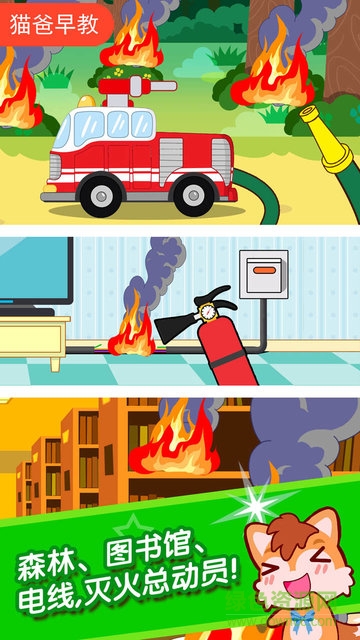 兒童消防小分隊(duì)是貓爸早教推出的一款兒童休閑益智游戲,模擬消防員來(lái)普及森林、圖書館等場(chǎng)景下的滅火操作,讓孩子正確了解火災(zāi),學(xué)習(xí)防災(zāi)知識(shí),綠色資源網(wǎng)歡迎大家下載體驗(yàn)!