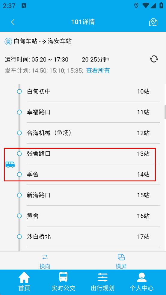 3、在線路詳情頁面,即可查看該公交線路的站點(diǎn)信息,包括各個站點(diǎn)的名稱以及站點(diǎn)順序等內(nèi)容。