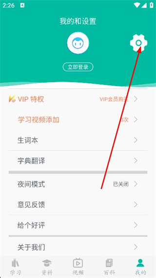 2、在我的和設置頁面中,點擊右上角的設置圖標。