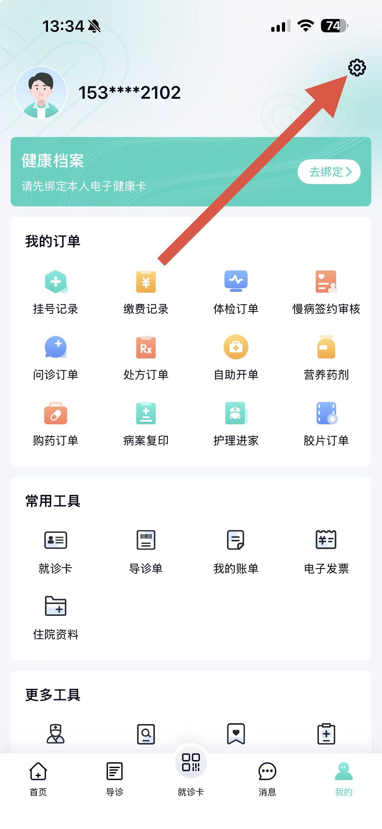 1、打開華醫(yī)通APP,點擊底部導航欄最右側的我的進入個人頁面。