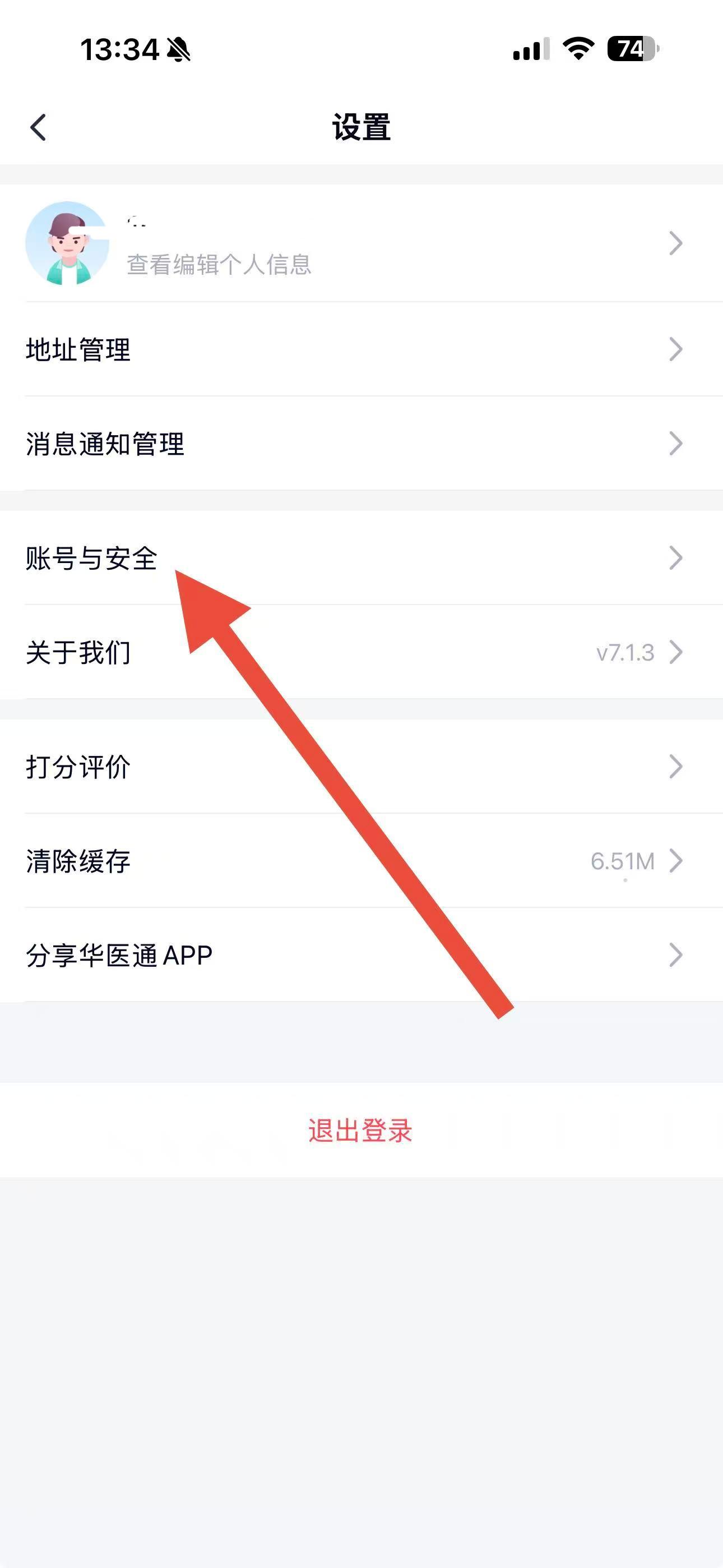 3、在設置界面里,點擊賬號與安全選項,進入賬號安全相關設置頁面。