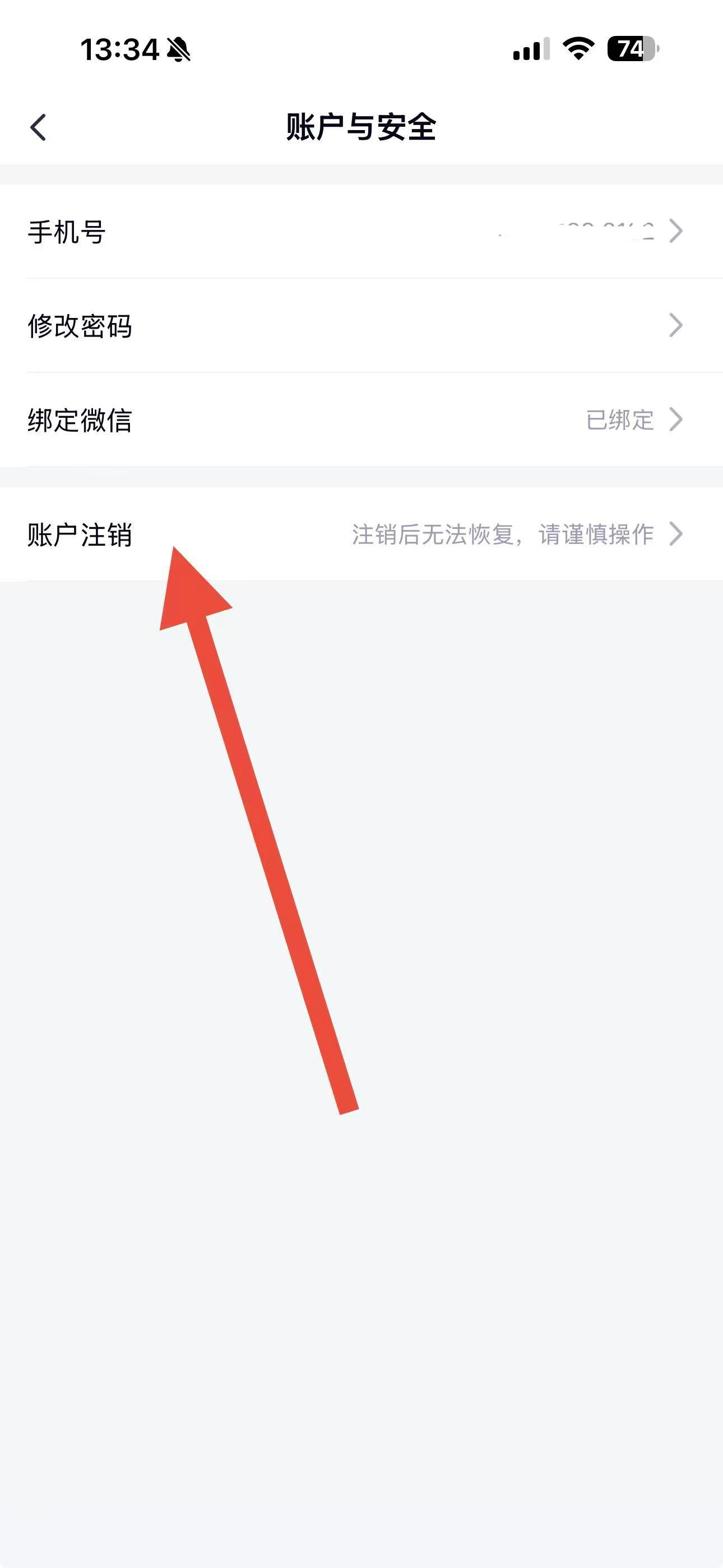 4、在賬號與安全頁面中,點擊賬戶注銷選項,按照提示操作即可注銷賬號,注意注銷后無法恢復請謹慎操作。