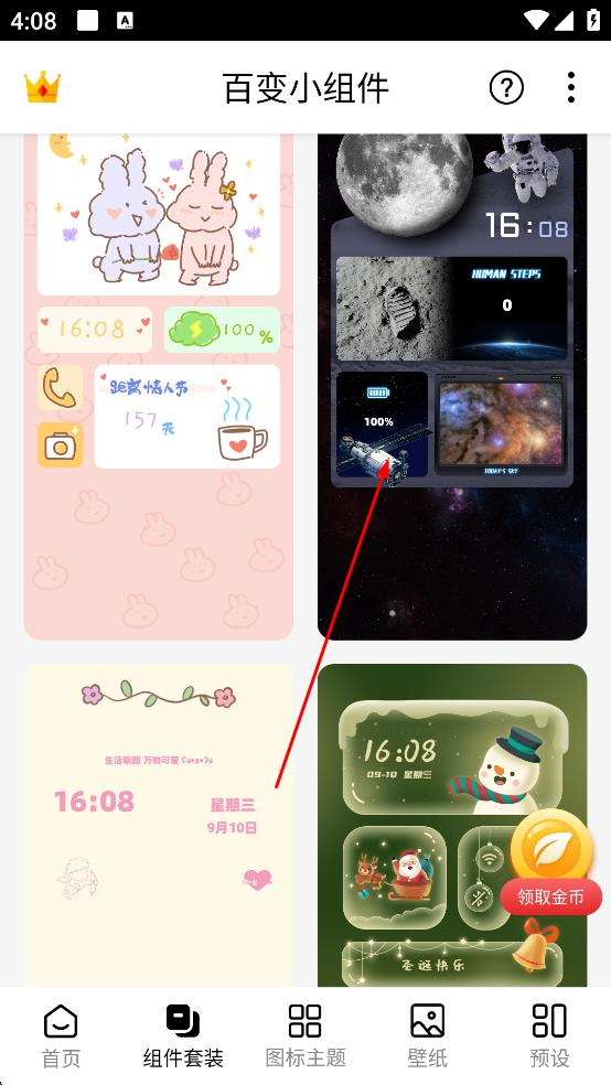 3、在組件套裝選擇頁面,瀏覽各類組件套裝,選擇一款自己喜歡的組件套裝,比如帶有太空元素的組件套裝,點(diǎn)擊該組件套裝。
