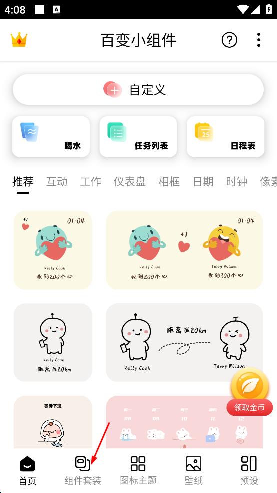 2、在應(yīng)用主界面,點(diǎn)擊底部“組件套裝”,進(jìn)入到組件套裝選擇頁面。