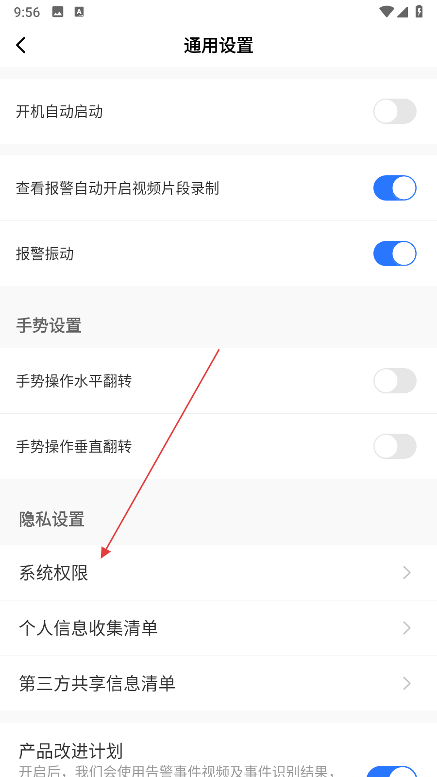 3、在設(shè)置界面里,點(diǎn)擊系統(tǒng)權(quán)限選項(xiàng),進(jìn)入系統(tǒng)權(quán)限管理頁(yè)面。