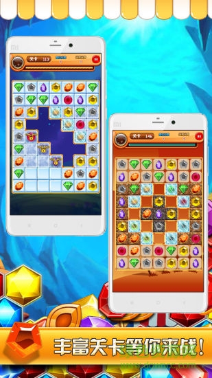 你的任務(wù)就是匹配并消除3個(gè)或3個(gè)以上相同的寶石,此游戲漂亮的畫面,動(dòng)聽(tīng)悅耳的音效。讓人欲罷不能。