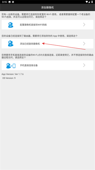 2、進入添加攝像機的界面內(nèi),點擊添加已經(jīng)聯(lián)網(wǎng)攝像機。