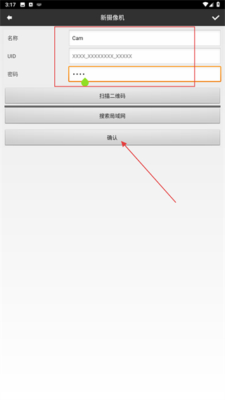 3、輸入設備名稱、UID、密碼后,再點擊確認按鈕即可。