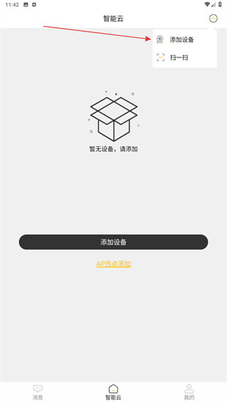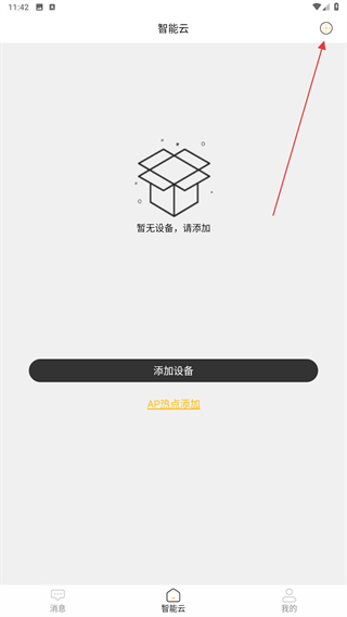 1、打開智能云的應用,進入首頁點擊右上角+的圖標。