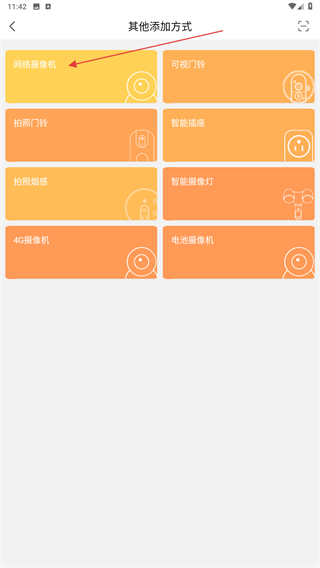 3、進入添加方式的界面內,點擊網(wǎng)絡攝像機的按鈕。