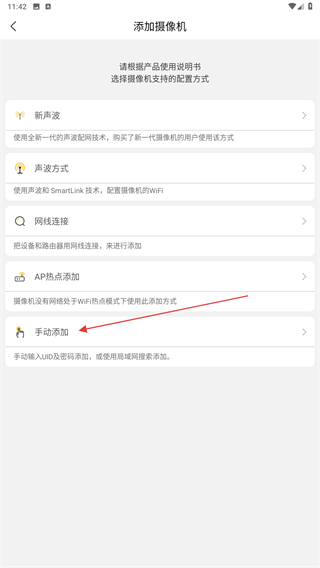 4、在添加攝像機的界面內,點擊最下方手動添加的按鈕。