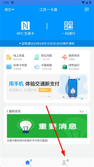 1、打開(kāi)江蘇一卡通app,點(diǎn)擊右下角我選項(xiàng),進(jìn)入個(gè)人頁(yè)面。