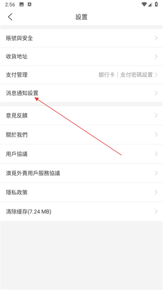 3、在設(shè)置頁面點(diǎn)擊消息通知設(shè)置選項(xiàng)。