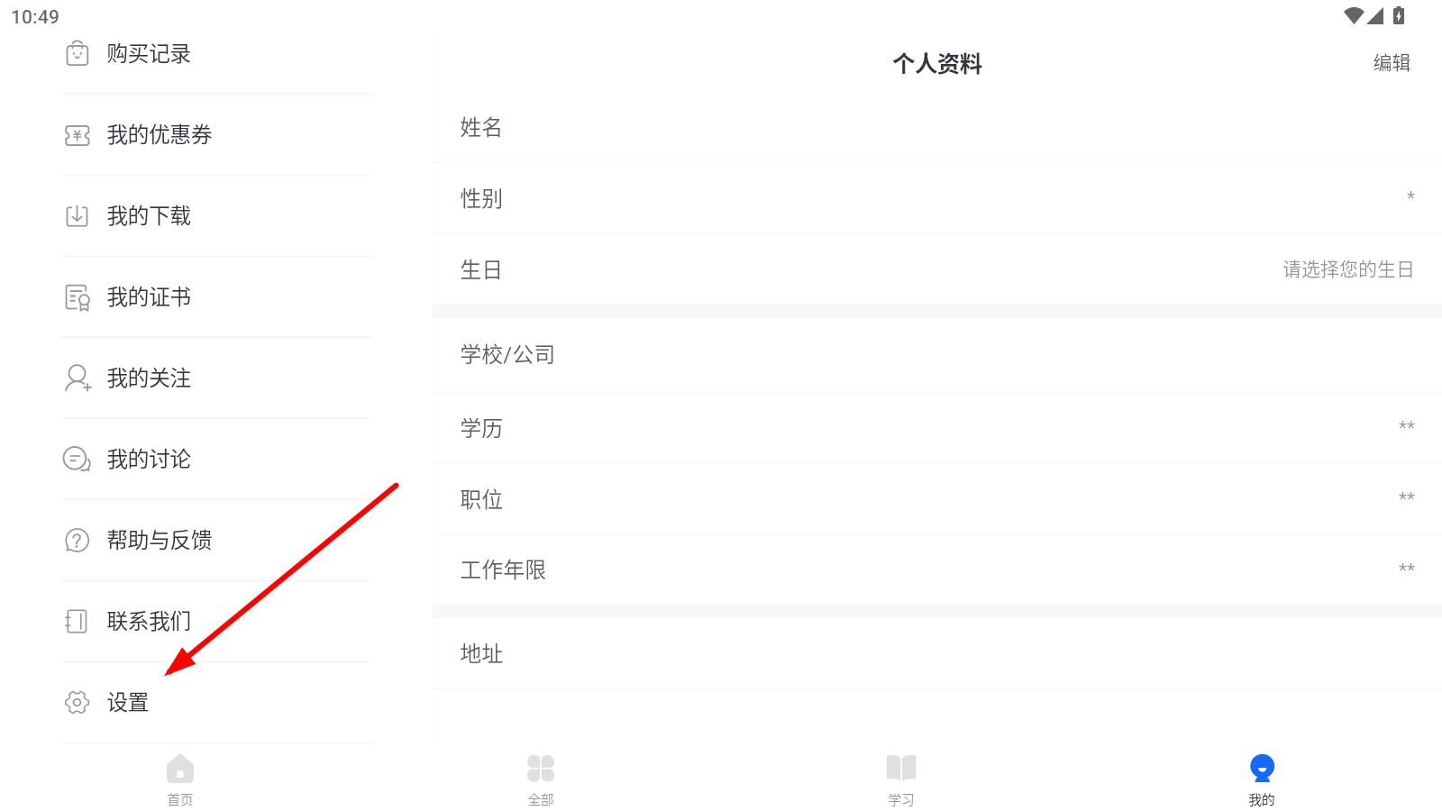 2、在我的頁面中,找到并點擊左側(cè)的設(shè)置選項,進(jìn)入設(shè)置界面。