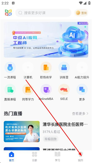 1、打開學(xué)堂在線,點擊底部導(dǎo)航欄的我的選項。