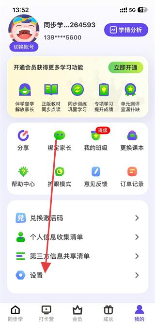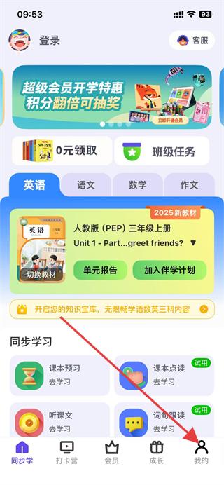 1、打開(kāi)同步學(xué)app,點(diǎn)擊底部導(dǎo)航欄的我的選項(xiàng)。