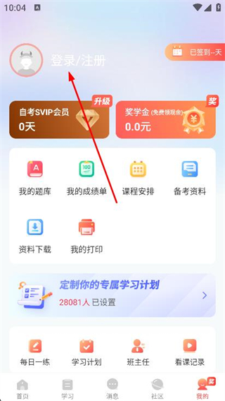 2、在我的頁(yè)面中,找到并點(diǎn)擊上方的登錄/注冊(cè)選項(xiàng)。
