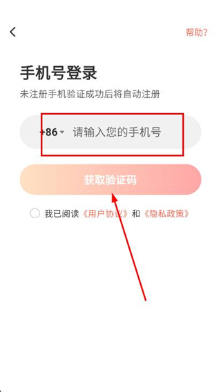 3、在手機(jī)號(hào)登錄頁(yè)面,輸入手機(jī)號(hào),點(diǎn)擊獲取驗(yàn)證碼。