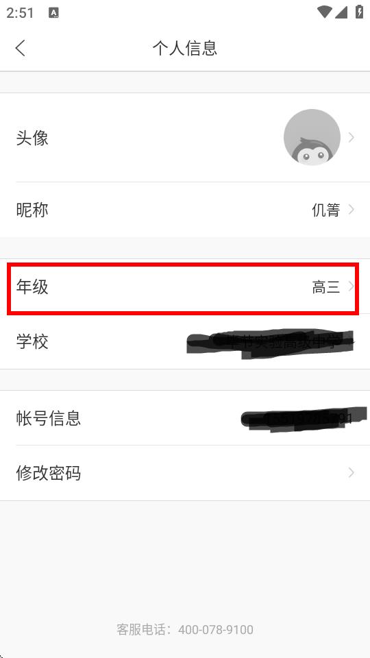 4、進(jìn)入個人信息編輯頁面后,找到年級選項并點(diǎn)擊,在彈出的年級選擇列表中,選擇想要設(shè)置的年級,即可完成重新設(shè)置。