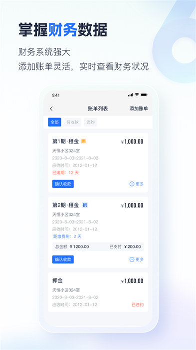 實時查詢所有房源的租約狀態(tài),租約到期提前提醒。