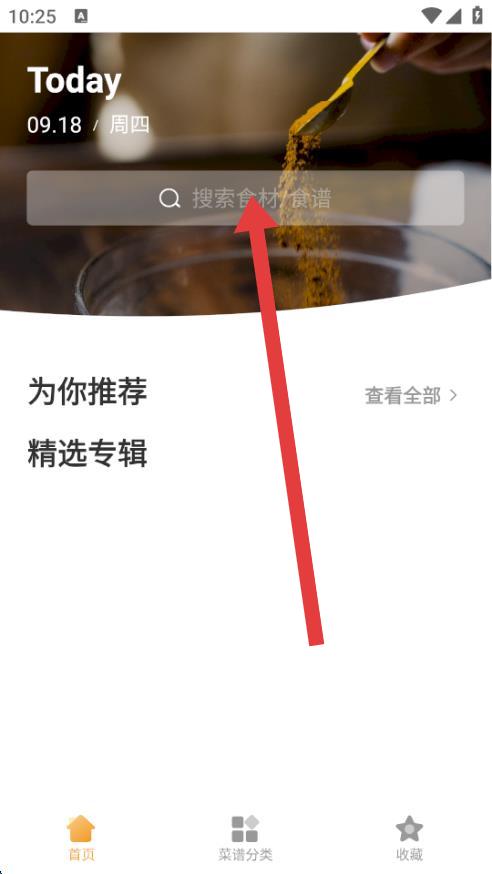1、打開做菜大全app,進入首頁后,點擊頂部的搜索欄。