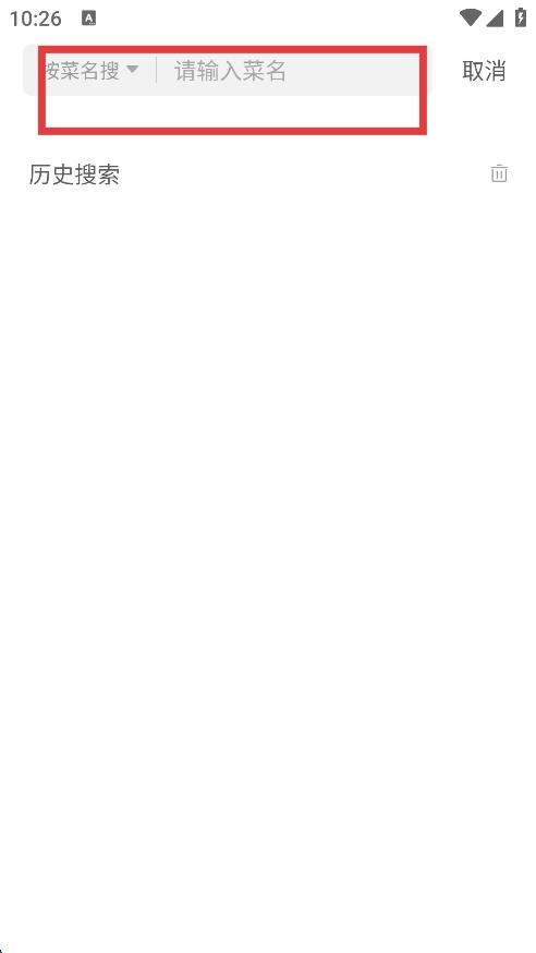 2、在彈出的搜索界面中,輸入想要查找的菜譜名稱,點擊搜索。