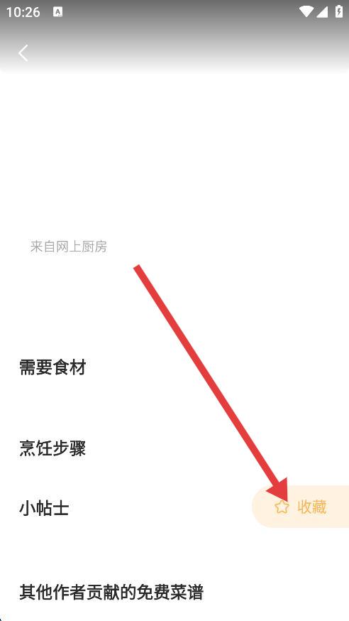 4、在菜譜詳情頁面,找到并點擊收藏按鈕,即可成功收藏該菜譜。
