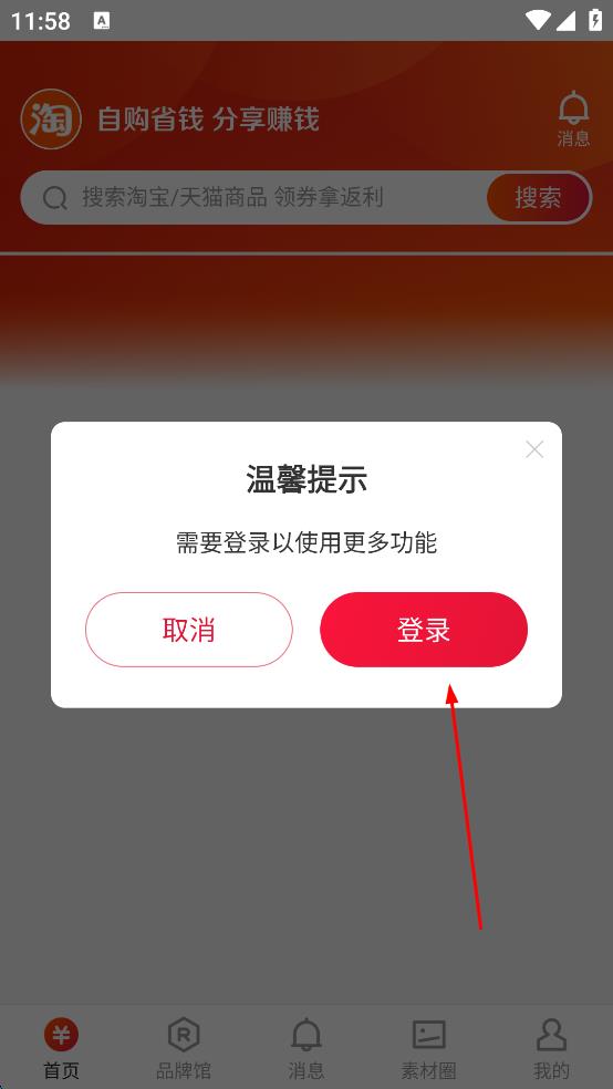 1、打開(kāi)貝店APP,點(diǎn)擊頁(yè)面右下角“我的”,彈出溫馨提示框后點(diǎn)擊“登錄”。