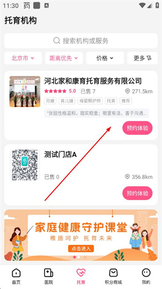 2、在托育機(jī)構(gòu)頁面選擇目標(biāo)機(jī)構(gòu),點(diǎn)擊進(jìn)入機(jī)構(gòu)詳情頁面。