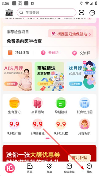 1、在孕健康 app 的首頁,點(diǎn)擊底部我的選項(xiàng),進(jìn)入個(gè)人中心頁面。