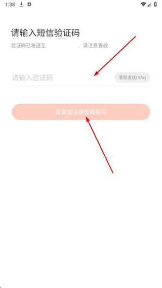 3、在短信驗(yàn)證碼頁(yè)面,輸入收到的驗(yàn)證碼,完成醫(yī)師賬號(hào)注冊(cè)。