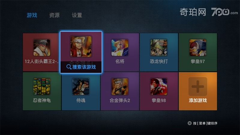 啟動(dòng)應(yīng)用,可以看到KO GameBox分為游戲、資源和設(shè)置三個(gè)大頻道,游戲頻道下已經(jīng)顯示兩行游戲:拳皇、合金彈頭、恐龍快打、侍魂…都是我們很熟知的經(jīng)典。