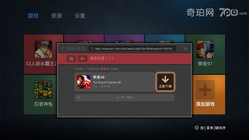 這里推薦使用“街機(jī)地帶”,網(wǎng)站對(duì)電視的界面和操作做了專(zhuān)門(mén)的適配,瀏覽和下載游戲非常方便。