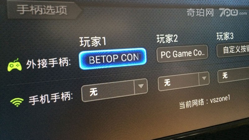 手柄通過(guò)USB連到小米盒子后,界面上會(huì)提示手柄已經(jīng)連接,在手柄選項(xiàng)區(qū)域也可以看到“玩家1”和“玩家2”下方顯示出了這2個(gè)手柄的名稱(chēng)。