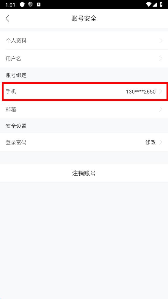 4、在賬號(hào)安全界面中,點(diǎn)擊手機(jī)選項(xiàng),進(jìn)入手機(jī)號(hào)管理頁(yè)面。