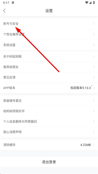 3、在設(shè)置頁(yè)面,點(diǎn)擊賬號(hào)與安全選項(xiàng),進(jìn)入賬號(hào)安全頁(yè)面。