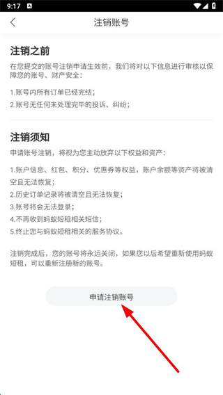 5、在頁(yè)面點(diǎn)擊申請(qǐng)注銷(xiāo)選項(xiàng)按鈕,按照提示完成賬號(hào)注銷(xiāo)操作。