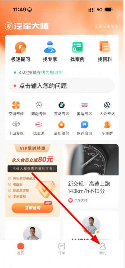 1、在汽車大師APP首頁,點(diǎn)擊底部我的選項(xiàng),進(jìn)入個(gè)人中心頁面。