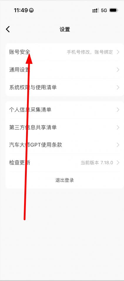 3、在設(shè)置界面中,點(diǎn)擊賬號安全選項(xiàng),進(jìn)入賬號安全頁面。